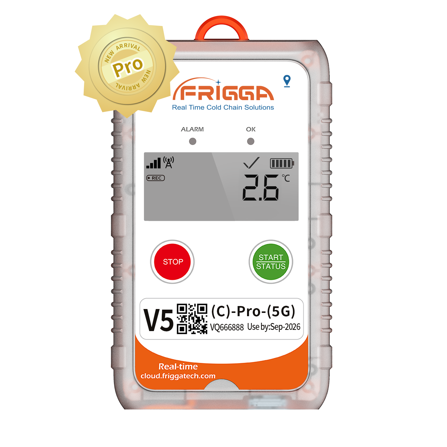 The Frigga V57 (5G) is a versatile real-time data logger designed for monitoring temperature, humidity, and positioning. Operating within a temperature range of -30°C to +70°C, this device is essential for logistics and quality control departments. It offers comprehensive monitoring throughout the entire process, providing real-time insights into temperature, humidity, location, and trajectory.